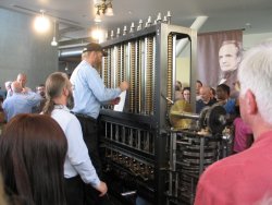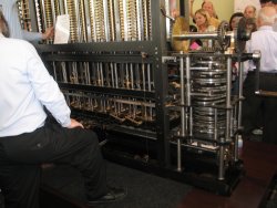 Just got back from the opening weekend of the newest exhibit at the Computer History Museum in Mountain View, CA. The museum’s in the old SGI building, for locals, and it’s a lovely little place. The exhibit is a working Babbage Difference Engine! The following is based on my memory of what transpired, so if there are errors in this posting, blame me, not the display. Also, all photos are thumbnails you can click on for a larger version, which will open in a new window.