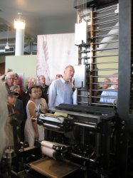 The entirety of the printer, along with agog passers-by (from about 12 o’clock and looking at the opposite end of the Engine from the crank)